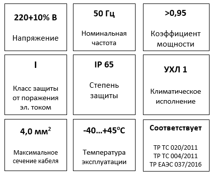 Источник света: светодиоды последнего поколения. Базовая цветовая температура 4000К, Ra≥80, ресурс модуля 100 000ч (критерий L70), падение светового потока до 10% - более 50 000ч (критерий L90).